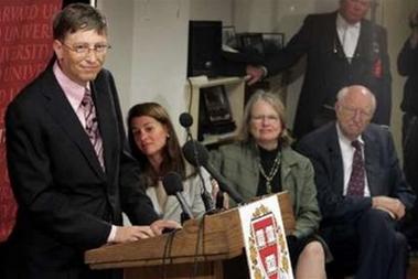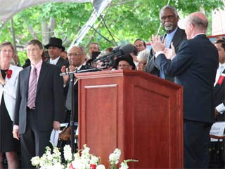 Derek Bok (ngoài cùng bên phải) giới thiệu diễn giả Bill Gates trong lễ phát bằng Ảnh: CNet.